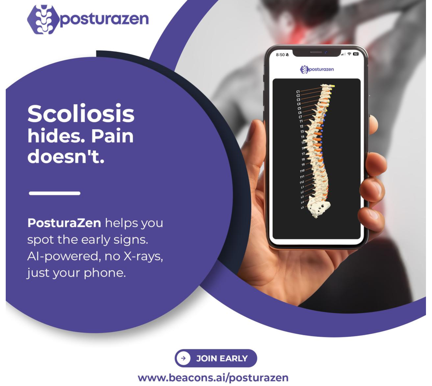 Harness the power of AI to detect scoliosis, track posture progress, and improve spinal health with real-time insights.